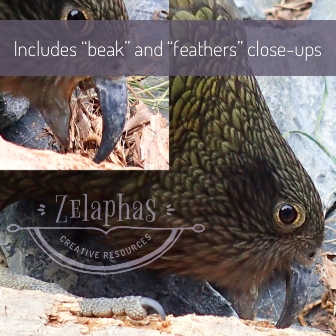 This bundle has several photos of wild keas and two close-up compilations of their beaks and feathers, ideal for choosing colors and getting those tiny details just right. They're not ideal for use as stock, but they're perfect for artist references.